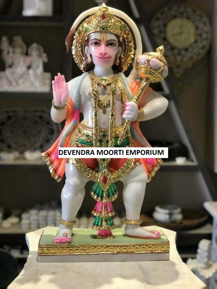 "Elegant and Sacred Lord Hanuman Idol in Premium Makrana Marble."